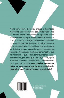 Em A dominação masculina, Pierre Bourdieu analisa o comportamento dominante masculino que sobrevive na sociedade atual, denuncia um modo de pensar pautado pelas dicotomias e oposições, e faz o leitor refletir sobre o tema com olhar crítico indispensável. Sempre questionador e polêmico, o autor inverte a relação causa-efeito, afirmando que essa dominação não é biológica, mas uma construção arbitrária do biológico que fundamenta as divisões sexuais aparentemente espontâneas; a biologia e o corpo seriam espaços onde as desigualdades entre os sexos seriam naturalizadas.