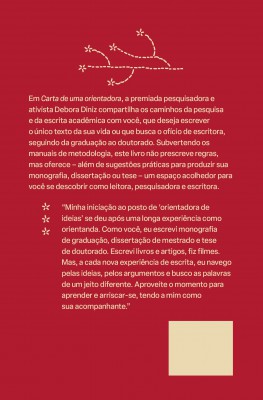 Orientar é comunicar-se por histórias, saberes e experiências. É ler atentamente e escutar delicadamente. É também nos ajudar a transformar os meios de “habitar o poder e o prestígio acadêmicos”. É nos lembrar de que fazemos parte de uma construção coletiva. Tudo isso você encontra em Carta de uma orientadora, este livro conciso e escrito em linguagem acessível.
