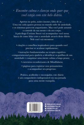 A psicóloga Corinne Sweet, especializada em terapia cognitivo-comportamental, vai acompanhar você na busca para eliminar a ansiedade por meio deste diário. Com textos informativos, exercícios e técnicas de mindfulness, Diário para ansiosos conta ainda com as belas ilustrações de Marcia Mihotich.
