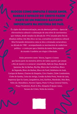 Blocos como Simpatia É Quase Amor, Barbas e Suvaco do Cristo fazem parte de um período bastante importante na história do país. É o ápice da redemocratização, ano da abertura política – época de efervescência cultural e culminação de uma série de movimentos que vinham, desde meados da década de 1970, lutando pelo fim da ditadura militar. Em Meu bloco na rua, a jornalista e produtora cultural Rita Fernandes demonstra como se deu a retomada carnavalesca na década de 1980 – acompanhando os movimentos de reabertura política – e conta por que a história da maior festa popular do mundo é também um elogio à liberdade.