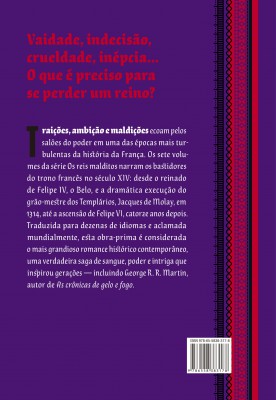Traições, ambição e maldições ecoam pelos salões do poder em uma das épocas mais turbulentas da história da França. Os sete volumes da série Os reis malditos narram os bastidores do trono francês no século XIV – desde o reinado de Felipe IV, o Belo, e a dramática execução do grão-mestre dos Templários, Jacques de Molay, em 1314, até a ascensão de Felipe VI, catorze anos depois. Traduzida em dezenas de idiomas e aclamada mundialmente, esta obra-prima é considerada o mais grandioso romance histórico contemporâneo, uma verdadeira saga de sangue, poder e intriga que inspirou gerações.