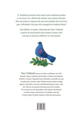 O que é ter uma boa vida? O que eu preciso para ser feliz? Esses são questionamentos que fazem parte da mente das crianças desde tenra idade. Em O lenhador e a pomba, Max Velthuijs trata não só destes, mas de diversos dramas existenciais presentes na mente das crianças. A ganância e a insatisfação na vida de um pobre lenhador são os combustíveis que junto as famosas e consagradas ilustrações dão origem a este magnífico livro que vai encantar as crianças. E, principalmente, demonstrar-lhes que muitas vezes a felicidade consiste nas coisas mais simples da vida. • Em 2004 o autor recebeu o Prêmio Hans Christian Andersen 2004 para ilustradores. • Sua produção literária é superior a 40 títulos, traduzidos para 14 línguas, entre elas, o castelhano, inglês, alemão, francês, japonês, coreano e o português. • Suas imagens são eternizadas pelos diversos prêmios que o autor recebe até hoje, dentre os quais pode-se destacar o Lápis de Ouro da Holanda, que o autor recebeu duas vezes; o Lápis de Prata da Holanda e o American Graphic Award da Society of Ilustrators.
